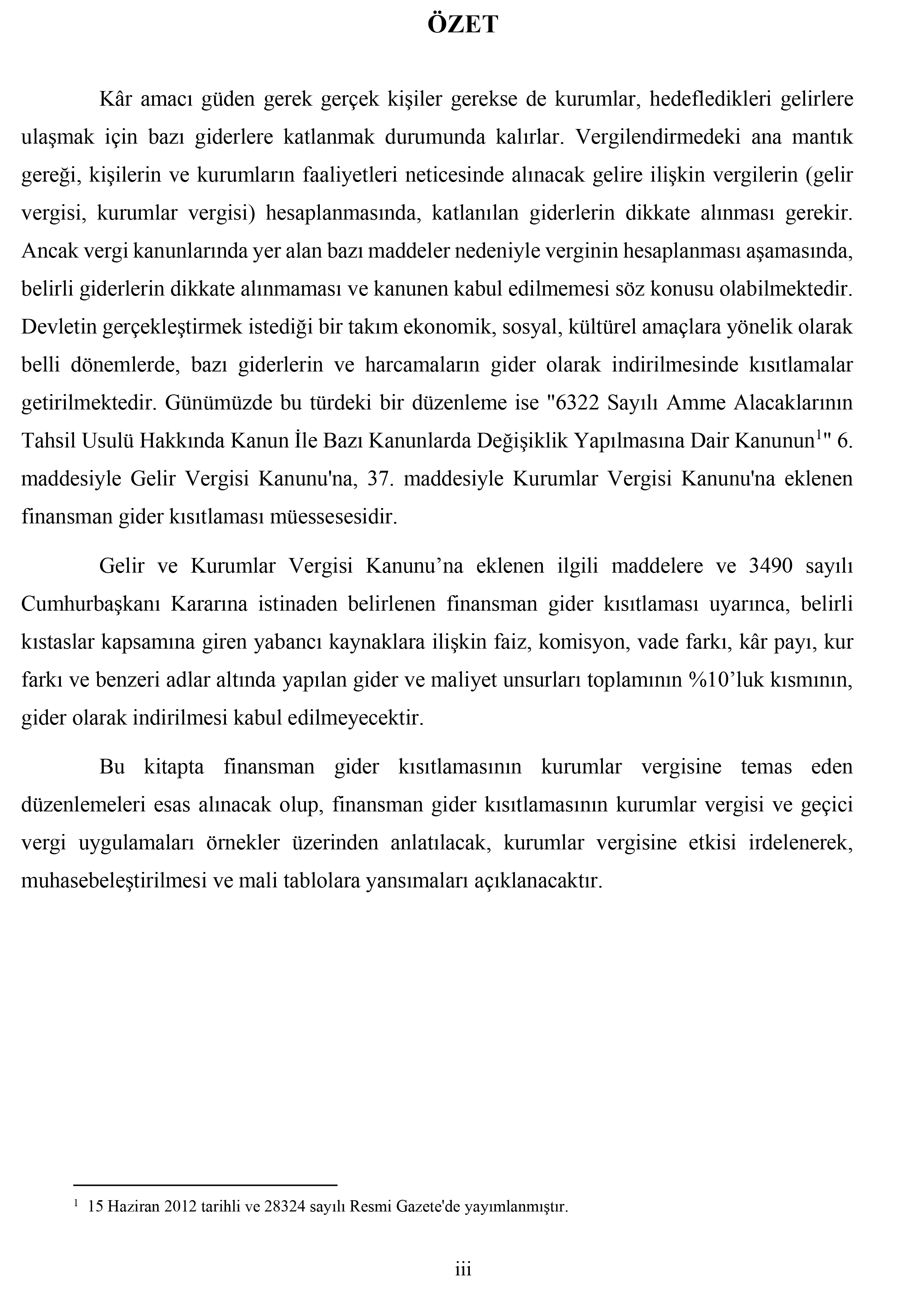 ÖZEL EK: FİNANSMAN GİDER KISITLAMASI